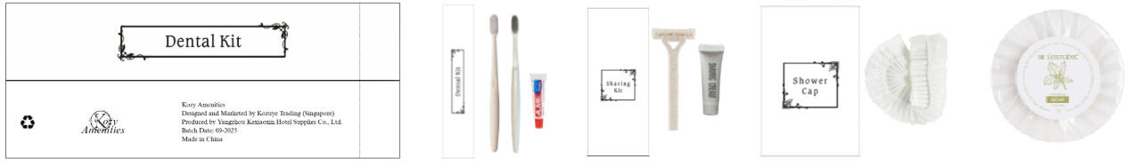 Dental Kit, Shaving Kit, Vanity Kit, Shower Cap, Sanitary Bag, Comb, Sewing Kit, Loofah, Soap